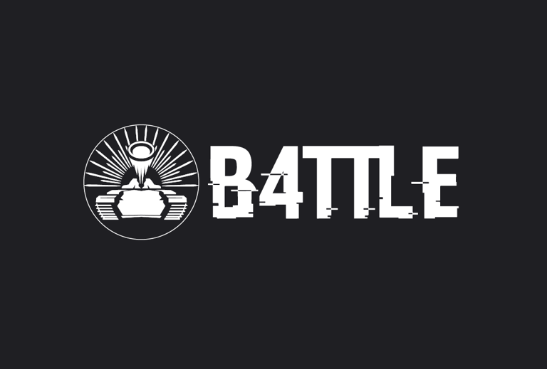 Para a marca tática/gamer, a identidade é robusta e arrojada. Utilizámos uma fonte com efeito "desgastado" (branca sobre preto) e um emblema circular com um tanque, enfatizando força, estratégia e competição.