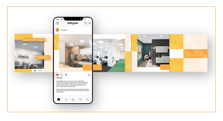 Desenvolvemos uma linha editorial para Instagram e outras mídias focada na estética aspiracional, fundamental para o nicho de decoração.